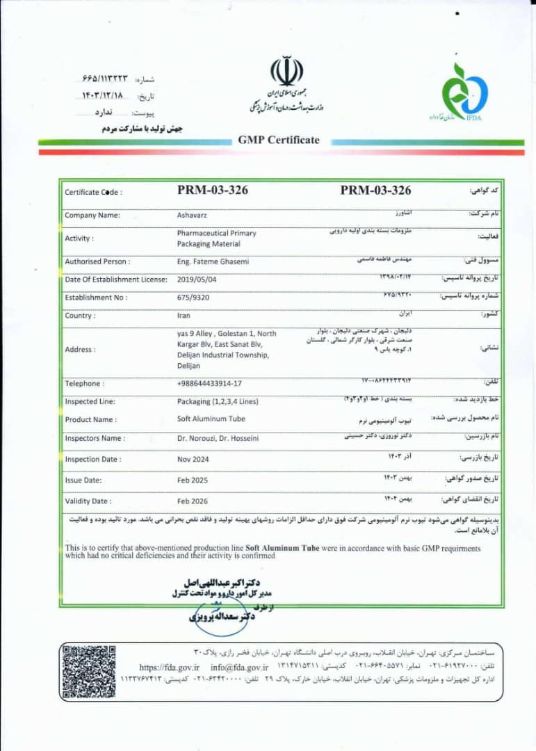 حفظ اعتبار بهعنوان یکی از اولویتهای مدیریتی و بازاریابی ما مطرح است. شرکت اشاورز با داشتن سال ها تجربه و با داشتن گواهینامه های متعدد، یکی از تولیدکنندگان برتر تیوب های آلومینیومی در ایران است.